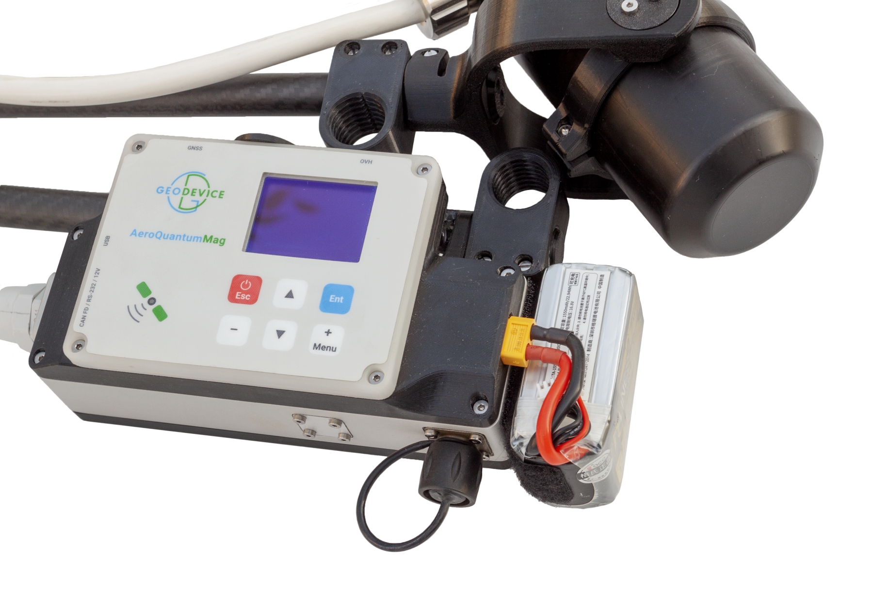 The lightweight 1300 mAh LiPo4 4S battery provides up to 1.5 hours of continuous measurement time (at 20°C), which exceeds the flight time of a standard light drone by 2-3 times. If necessary, the device can also be used as a magnetic variation station or GNSS tracker with a larger battery.
