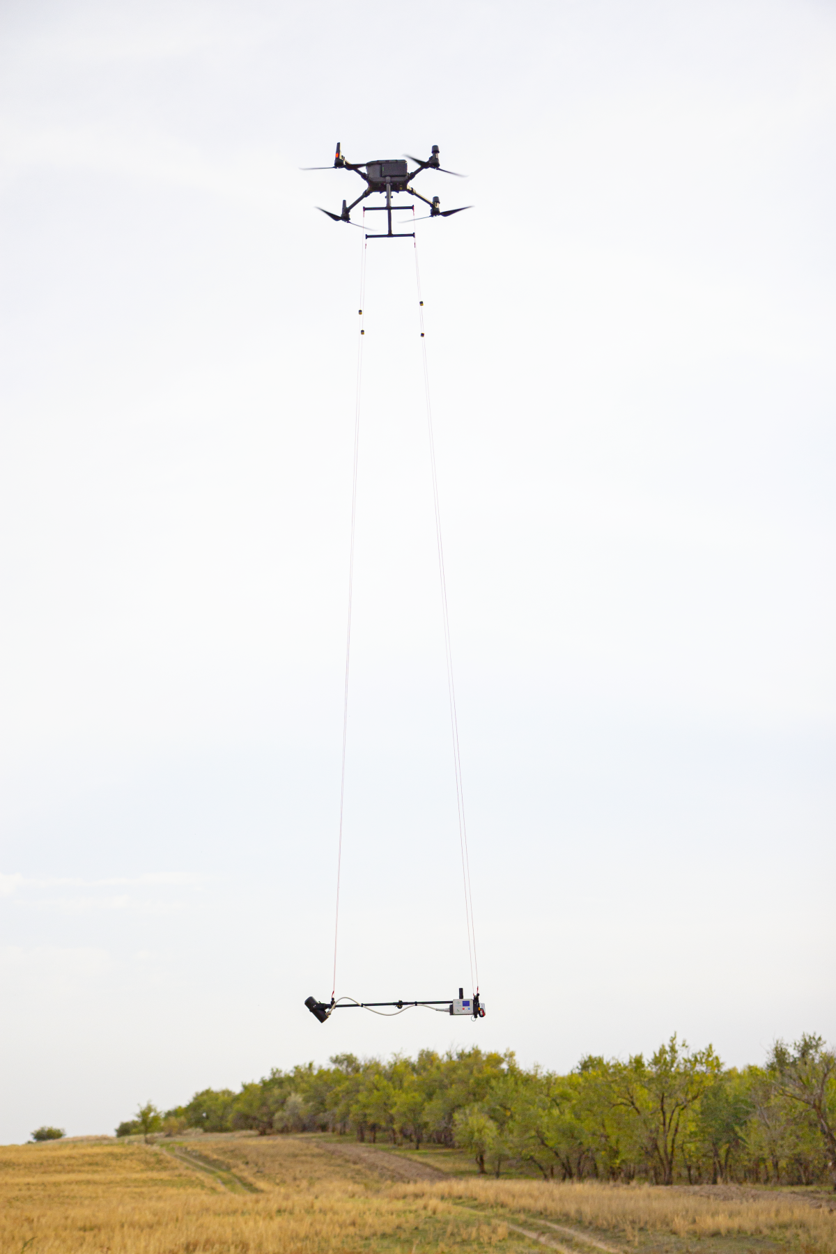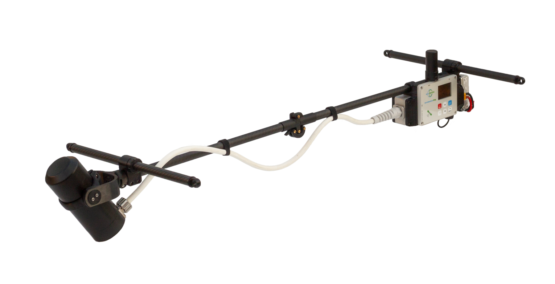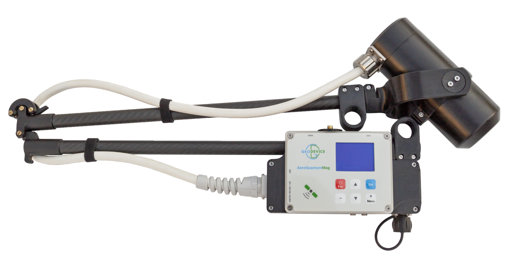 AeroQuantumMag is designed to efficiently perform magnetic survey work using drone. The device is featuring a high measurement speed (up to 100 Hz) and a sensitivity of 0.002 nT/√Hz rms. Aerodynamic body with carbon fiber frame weighs only 1.3 kg with battery. The low weight increases the flight time of the drone. The magnetometer requires no data exchange with the UAV and uses its own battery, so it can be used with any UAV. The magnetometer requires no data exchange with the drone and uses its own battery, so it can be used with any kind of aerial drone.